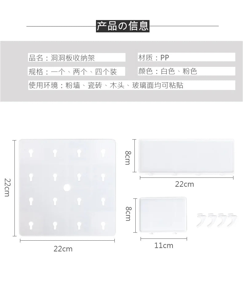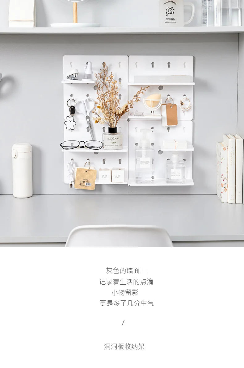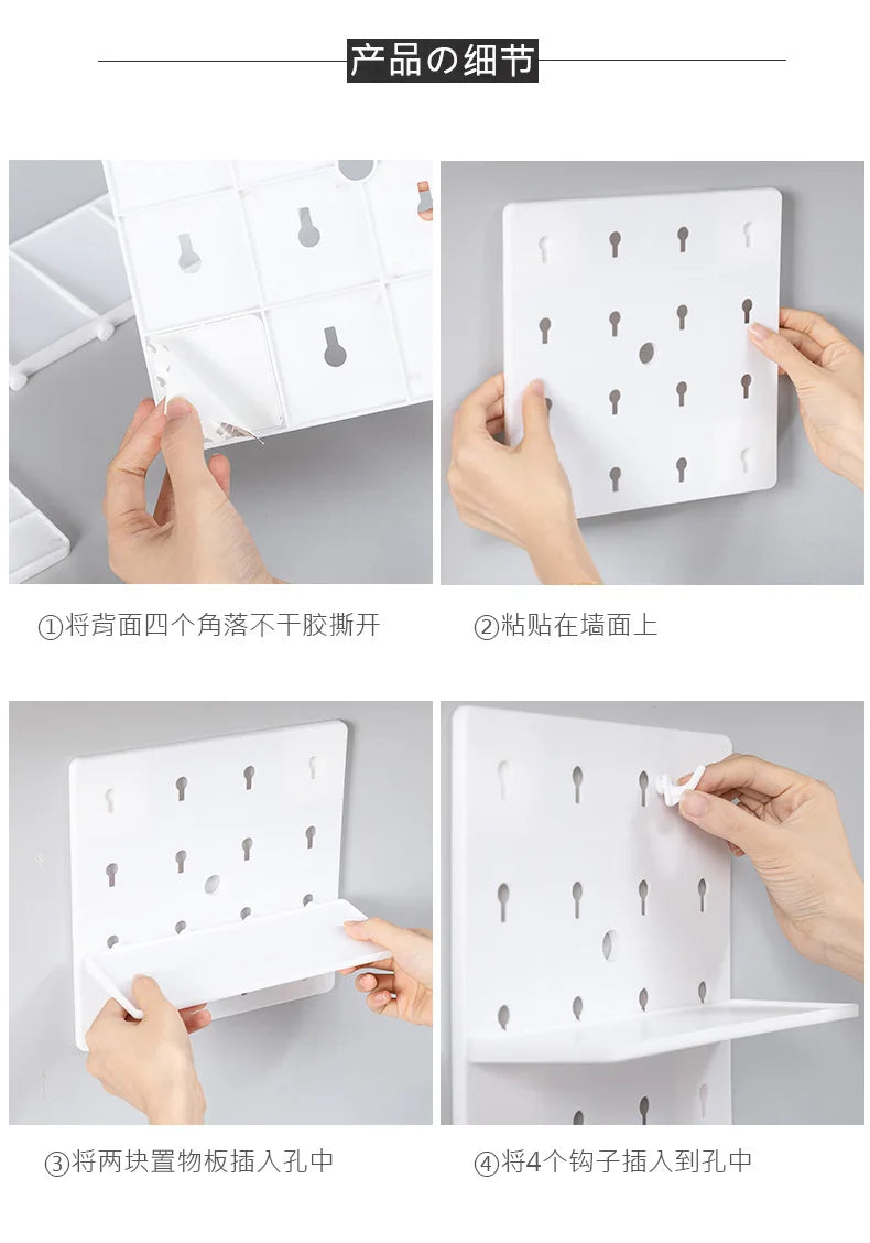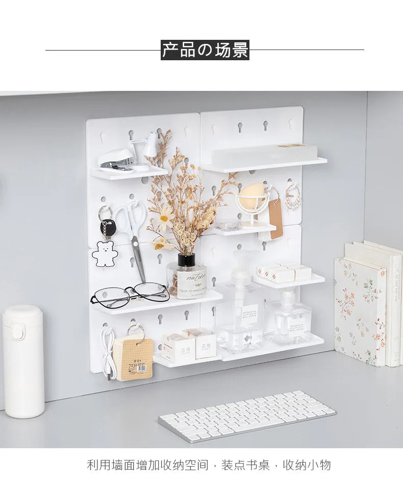 Punch-free Plastic Hole Board Wall Shelf Organizer Without Drilling Kitchen Bedroom Wall Hanging Pegboard Wall Shelf Rack Holder
